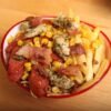 Papas de tu eleccion acompañadas de nuestro chorizo de la casa con un toque de salsa BBQ, Chorizo de pollo asado, huevo frito, y una capa de queso Mozzarella