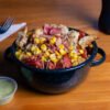 Empezamos con una base de papas a tu elección, acompañadas de nuestra salchicha FrankFurter, una capa de queso mozzarella y para terminar, trocitos de CHICHARRÓN carnudo acompañado de nuestro guacamole de mamá.